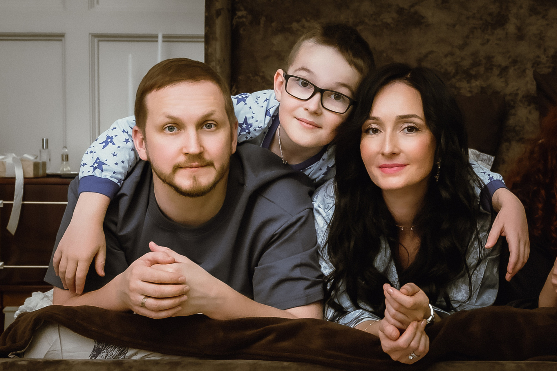 Семейная съемка в уютном зале.